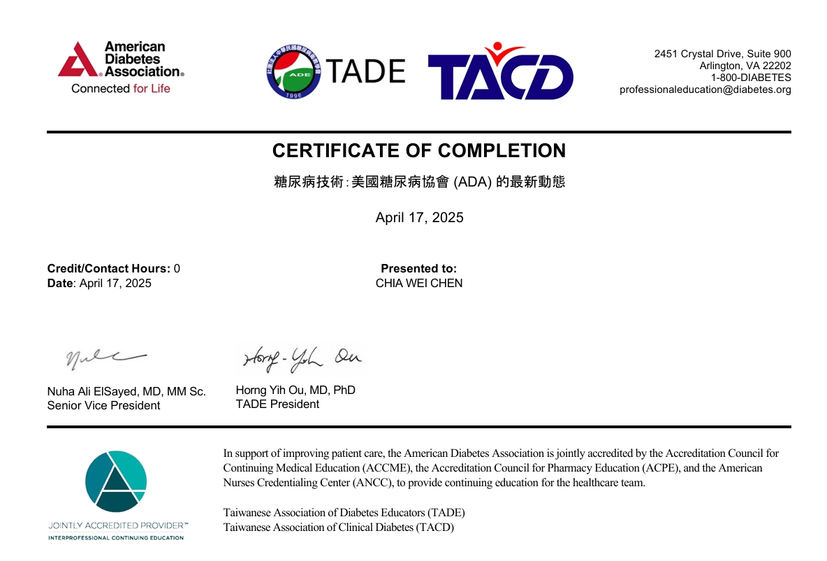 了解了連續血糖監測(CGM)、自動胰島素輸送(AID)系統,以及糖尿病科技在臨床照護與病患自我管理中的應用趨勢。技術的進步不只是數字升級,更是讓照護更精準、更貼近病人生活。